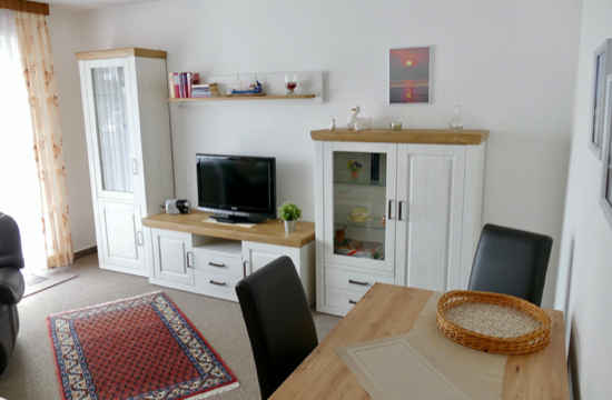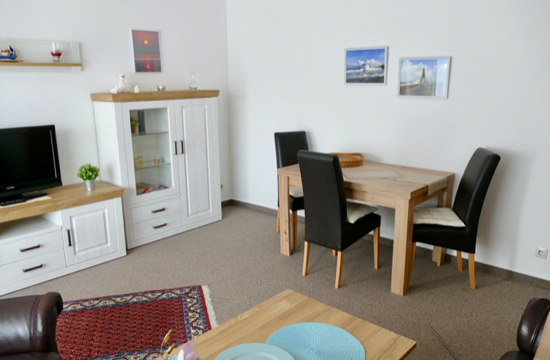 Die räumliche Aufteilung der Wohnung besteht aus einem Doppelbett-Schlafzimmer, einem großem Wohnzimmer mit Balkon, einer volleingerichtete Küche, einem Duschbad mit WC und einem Flur. Die Ausstattung und Aufteilung der Wohnung garantieren Ihnen einen angenehmen und erholsamen Urlaub.