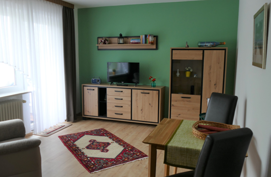 Die räumliche Aufteilung der Wohnung besteht aus einem Doppelbett-Schlafzimmer, einem großem Wohnzimmer mit Balkon, einer volleingerichtete Küche, einem Duschbad mit WC und einem Flur. Die Ausstattung und Aufteilung der Wohnung garantieren Ihnen einen angenehmen und erholsamen Urlaub.