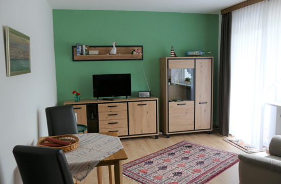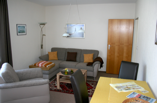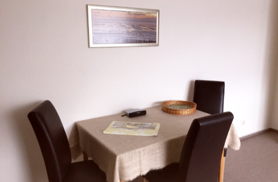 Die räumliche Aufteilung der Wohnung besteht aus einem Doppelbett-Schlafzimmer, einem großem Wohnzimmer mit Balkon, einer volleingerichtete Küche, einem Duschbad mit WC und einem Flur. Die Ausstattung und Aufteilung der Wohnung garantieren Ihnen einen angenehmen und erholsamen Urlaub.