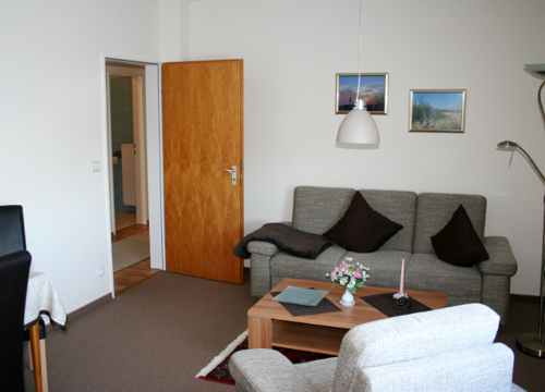 Die räumliche Aufteilung der Wohnung besteht aus einem Doppelbett-Schlafzimmer, einem großem Wohnzimmer mit Balkon, einer volleingerichtete Küche, einem Duschbad mit WC und einem Flur. Die Ausstattung und Aufteilung der Wohnung garantieren Ihnen einen angenehmen und erholsamen Urlaub.